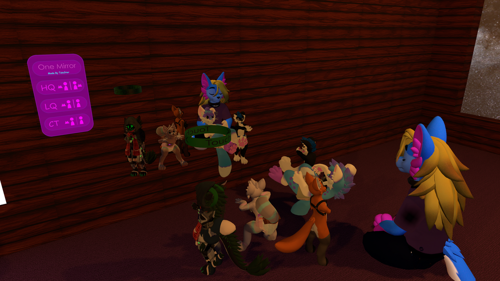 This is an improved version of my previous mirror. The VRC OneMirror features a simple and easy to use interface that allows for toggling the mirror to either high quality, low quality, and cutout modes. What sets this apart from other mirrors is that this asset only uses one mirror, so there is no switching between multiple mirrors for different settings. This allows for less objects per mirror, and can save on world size. This mirror also features a customizable proximity trigger for turning the mirror off once a player gets far enough away.